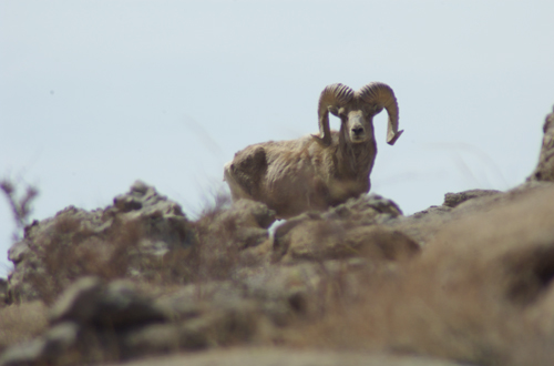 Argali ewe, Ikh Nartiin Chuluu; April 2005; I added a lamb and moved the ewe up so her head would be against the sky for maximum contrast