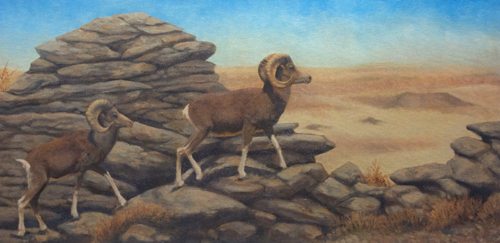 For one of my first argali paintings, I wanted to show them in the fantastic landscape of Ikh Nartiin Chuluu; April 2005