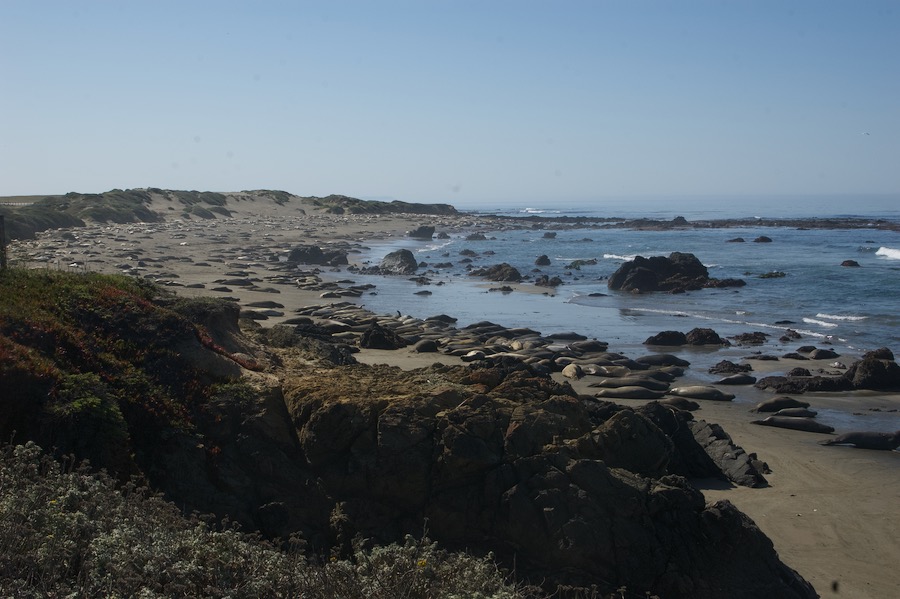 I haven’t shared a step-by-step for awhile, so I documented the stages of this one more than I usually do. Below is the scene…hundreds of elephant seals hauled out on the beach, some just conked out in the warm sun, others getting into tiffs of one kind or another. We saw them on a trip back from Southern California in May, 2007. Piedras Blancas is located just north of San Simeon, home of Hearst Castle.