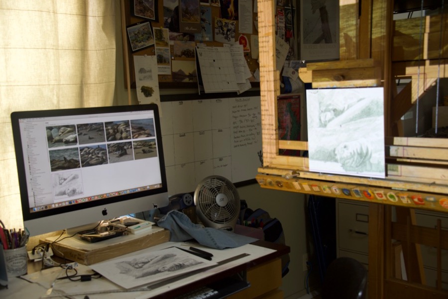 “Elephant Seals, Piedras Blancas” is currently in “Magnificent Migrations: A Journey Through Central California” a joint exhibition of the California Art Club and the Pacific Grove Museum of Natural History.