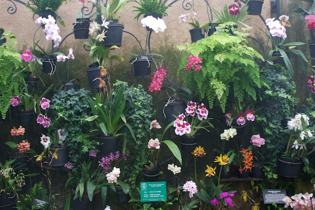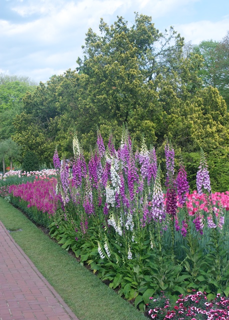 Longwood Gardens spring border with foxgloveA favorite; Longwood Gardens varigated pineappleA wall of orchids at Longwood Gardens