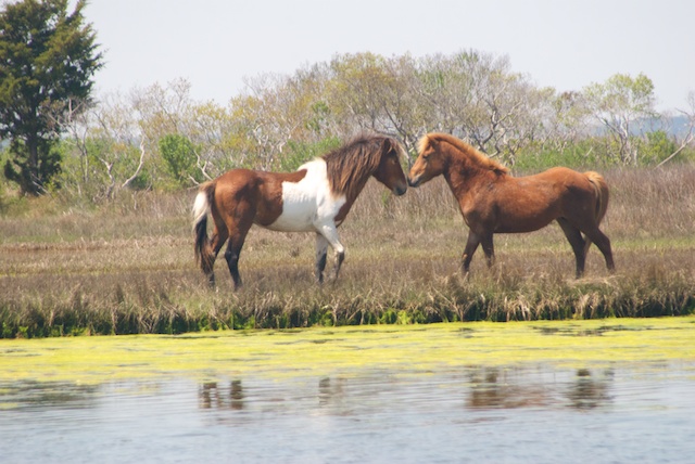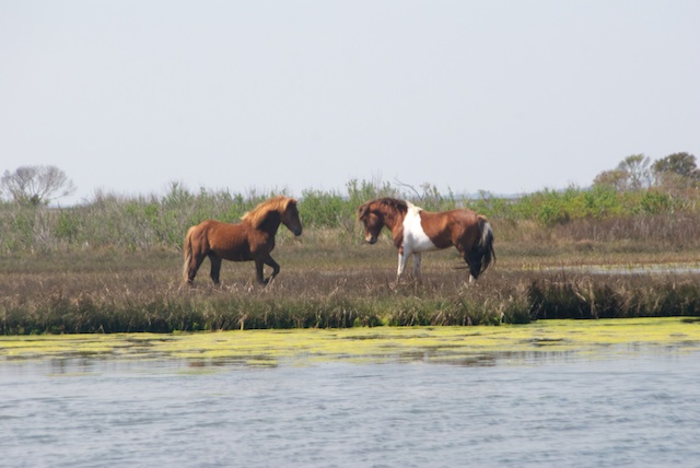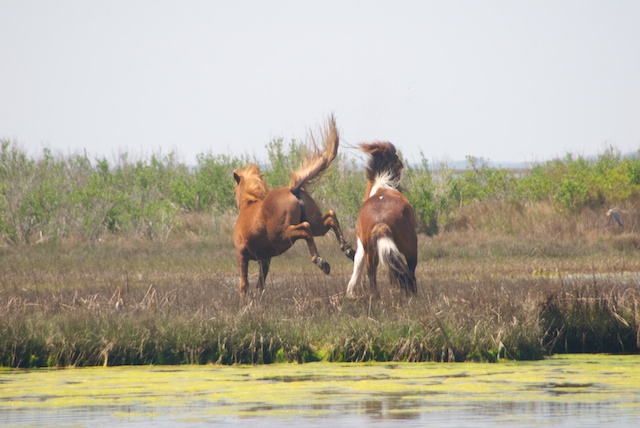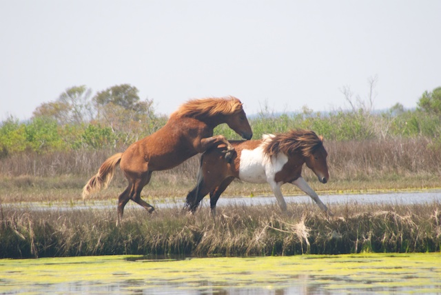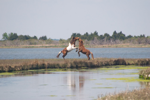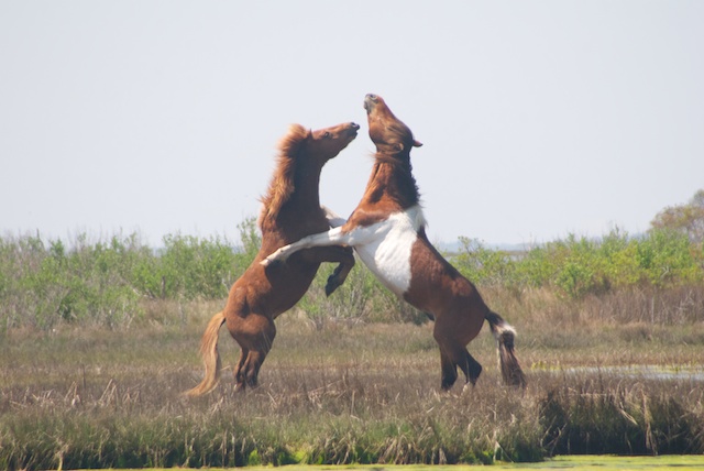 Then it was off to the Delaware coast where a comfortable condo had been put at our disposal. I had read “Misty of Chincoteague” as a child and was excited to finally visit both it and Assateague National Seashore, where we turned out to be in the right place at the right time to record this stunning encounter between two young stallions. It went on for at least a half hour and these are just a few of the hundreds of photos I shot, but it shows the pattern of interaction that emerged and was repeated at least a half dozen times.