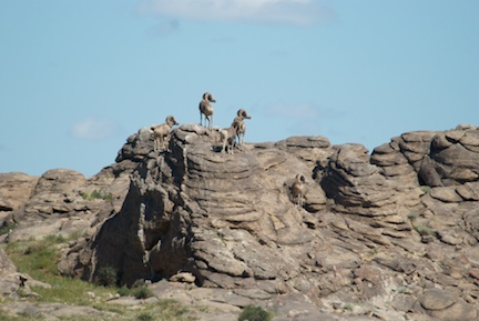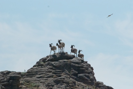 5. I knew nothing about Baga Gazriin Chuluu Nature Reserve when I arranged to go there as part of my July 2009 Artists for Conservation Flag Expedition other than it had argali. I was only there for two days, but they were two of the most memorable days I’ve had in four trips to Mongolia. The reserve is home to about 60 argali, which are more tolerant of people and vehicles than the ones I’ve seen elsewhere, along with Siberian ibex, cinereous vultures, columbia rock doves and other birds. The rocky uplands cover a smaller area than Ikh Nart (no.6 below), and are easy to get around in on foot or by vehicle. There is a ger camp tucked up against one of the rock formations with an amazing view down the valley. A concrete “ger” serves as the dining hall and has a covered patio area. There is a toilet/shower block, for which the water is heated by solar power. Baga Gazriin Chuluu is about a six hour drive on an earth road southwest of Ulaanbaatar.