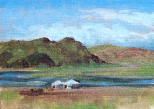 Fresh off the easel! “Summer Snack, Mongolia”. Without really meaning to I took 2021 off from painting and didn’t do much art at all. Quite of few of my colleagues spent the year the same way, not very motivated with Covid so serious. But as the new year has dawned folks are picking up their brushes, pens, pencils etc. again same as I am. I did another painting before this one, which I’ll also be posting a step-by-step on but am so pleased with this one I decided to share it first.
