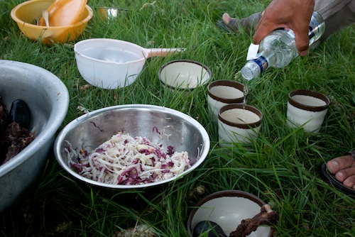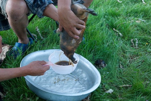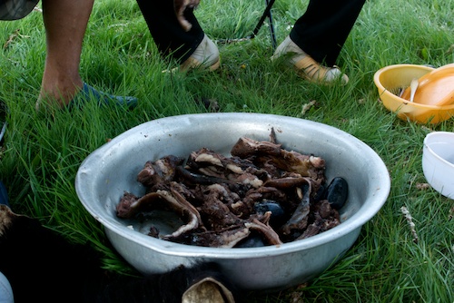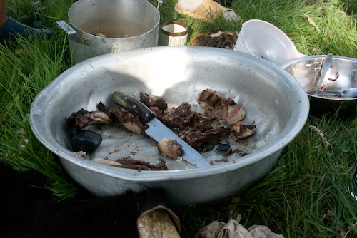 I had made arrangements in advance for a special late lunch, khorhog, the “real” Mongolian BBQ. Greg was happy to set it up since the purchase of a sheep by visitors is something that supports the local community and it turned out that our “supplier” was also someone who had project dogs.